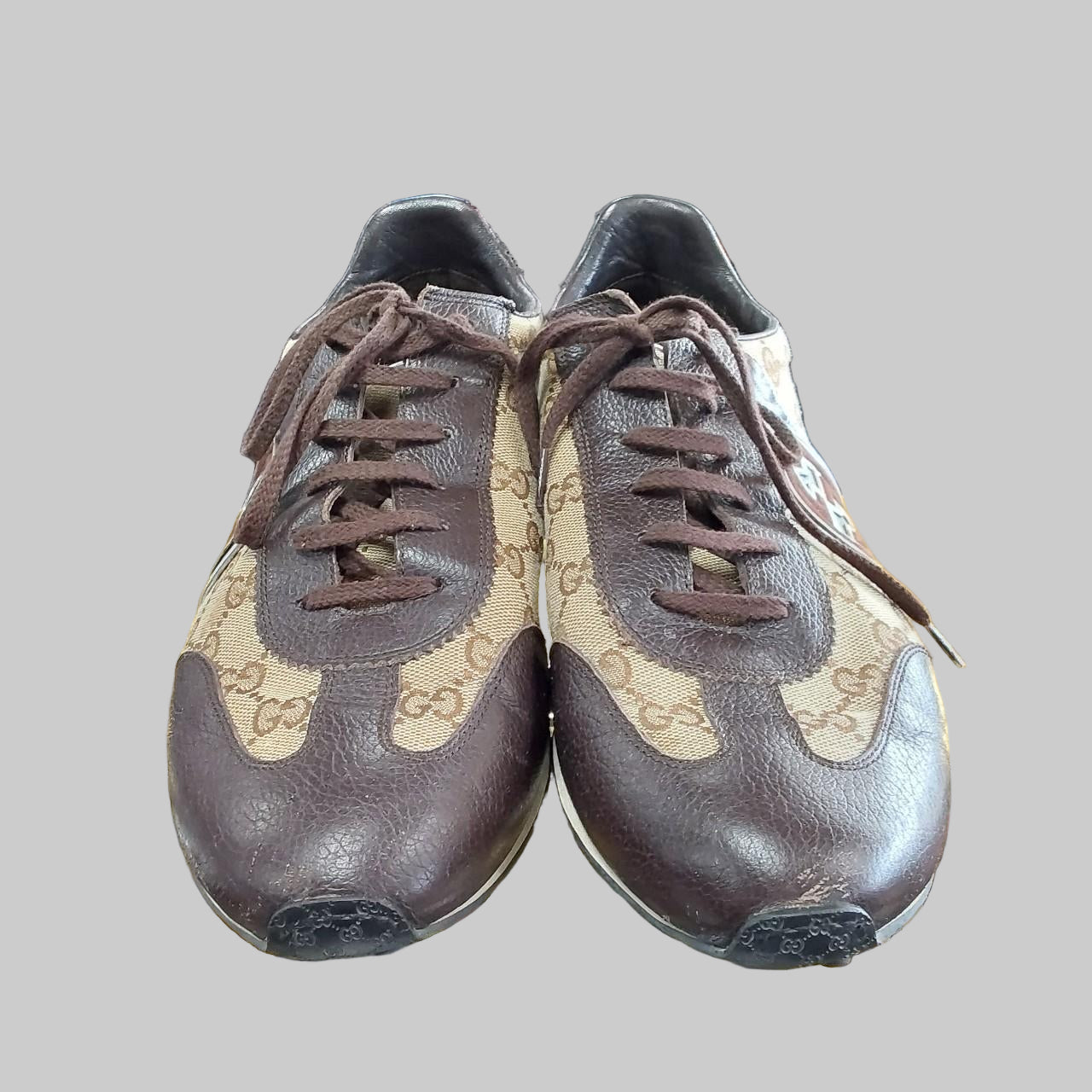 Gucci Men's Sneakers size 10.5 in great condition. These shoes has some wear along the back soles and a small scuff on the front.